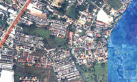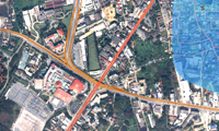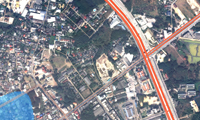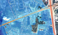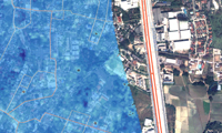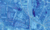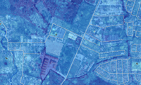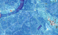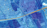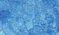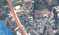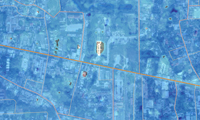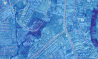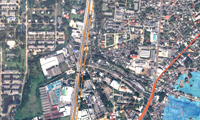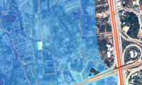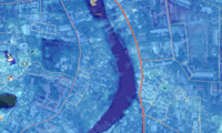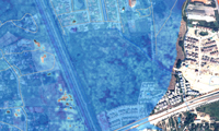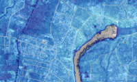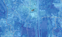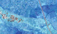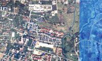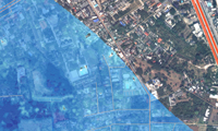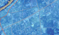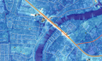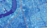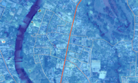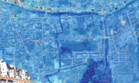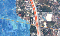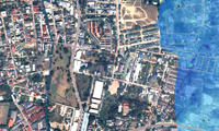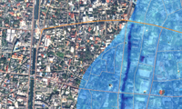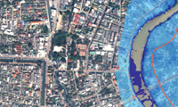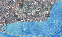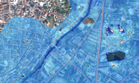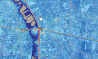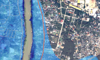 แผนที่ภาพถ่ายทางอากาศซ้อนทับประมาณการระดับความลึกของน้ำท่วม